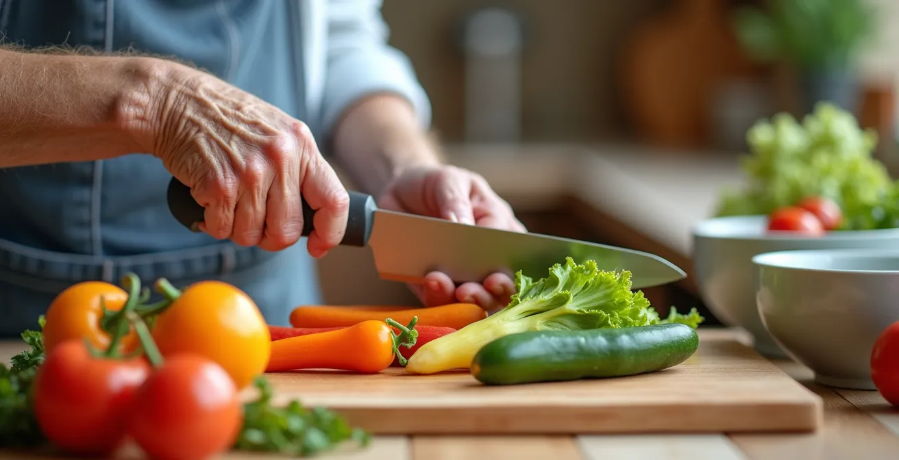 The sharp, aching pain in your hands can turn a simple act of love, like chopping vegetables for a family meal, into a daunting and painful task. For many seniors dealing with arthritis, the kitchen transforms from a place of creativity into a landscape of obstacles. You might find yourself reaching for pre-packaged, processed meals not because you want to, but because twisting a lid or gripping a knife feels impossible today. The common advice is often to “get a food processor” or “buy some gadgets,” but this rarely addresses the root of the problem.